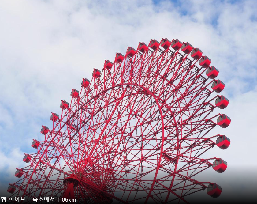 오사카 시내가 한눈에 보이고 평소 드라마나 영화에서나 볼 만한 전망 이었습니다. 아이들도 너무 좋아하고 깨끗하고 여행하는 동안 편안하게 잘 쉬었습니다.호텔 셔들 버스가 있어서 15분마다 있어서 지하철 역까지 다니는데 불편하지 않았고 도보로도 지하철역까지 가는데 10분정도면 갈수 있어서 위치도 괜찮았습니다. 지하철역에 음식점이 있는데 맛도 있고 가격도 부담안되고 정말 만족스런 여행이었습니다. 바로 옆에 우메다 스카이빌딩도 있고 헵파이브관람차도 걸어서 갈 수 있는 거리에 있어서 맘에 들었습니다. 감사합니다.