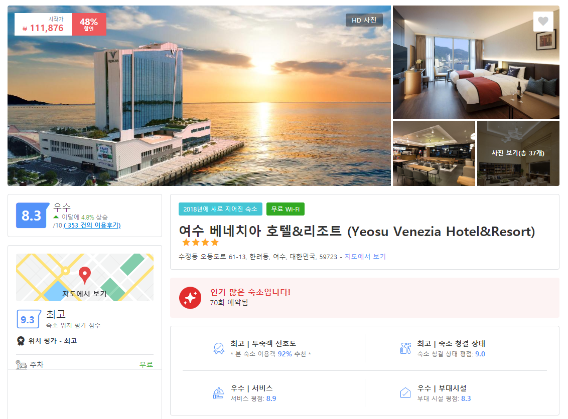 -여수 베네치아 호텔&리조트 (Yeosu Venezia Hotel&Resort) 아고다 후기-