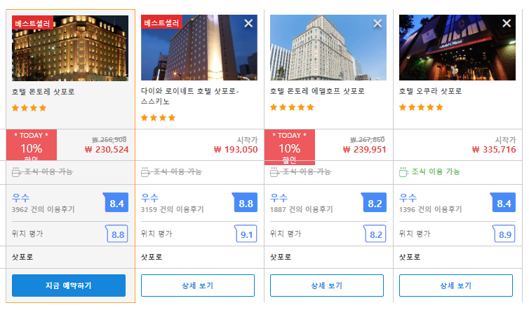 홋카이도 호텔 몬토레 삿포로 (Hotel Monterey Sapporo)의 최저 가격대는 아고다에서 할인특가 가격으로 매일매일 변동되며 20만원대부터 다양하게 형성됩니다. 아고다 최저가를 확인하시려면 아래 링크를 누르시면 원하는 날짜의 가격대를 자세히 보실 수 있습니다.