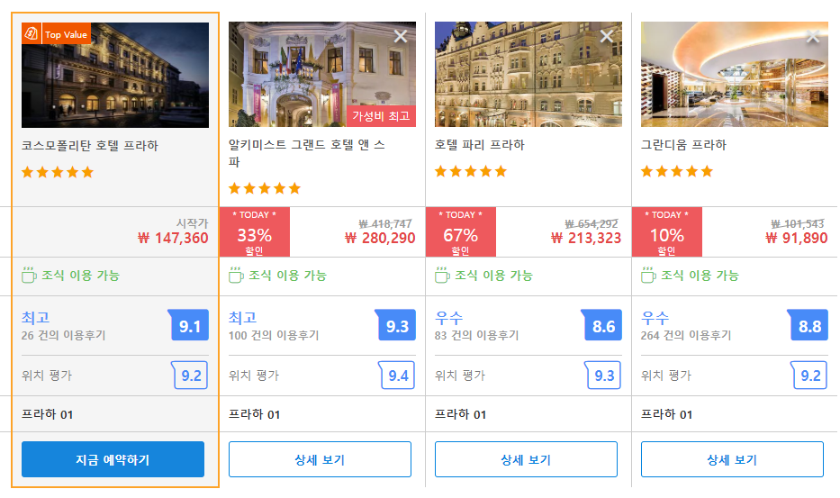 프라하시내의 깨끗하고 착한가격대의 호텔추천