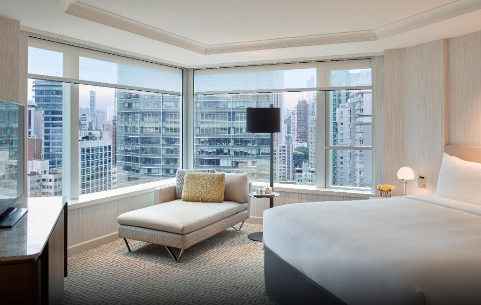 또한 JW 메리어트 호텔 홍콩 (JW Marriott Hotel Hong Kong) 빌딩 지하에는 전철을 있어 이를 이용하여 도시 곳곳을 쉽게 돌아다닐 수 있습니다. 32 스퀘어 미터의 객실은 천정에서 바닥까지 내려오는 창문이 설치되어 산이나 항구의 풍경이 한 눈에 들어옵니다.
