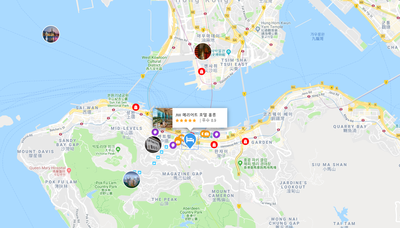 객실의 분위기와 어메너티 모두 만족스러웠습니다. 먼저 객실에서 바다, 도심, 산 전망이 파노라마로 보였는데 이것만으로도 충분히 만족스러웠습니다. 제공되는 커피, 티, 과일 모두 좋았습니다. 또 남동생과 함께 하는 여행이라 불편한 부분이 있을거라 예측했는데 욕실이 객실 내 복도 쪽에 위치해있어 편했습니다! 단, 센트럴과 셩완까지 걸어다니기 조금 먼 위치라 주변이 산만하지 않은 것은 장점이나 가까운 편의점이나 로컬 분위기가 물씬 느껴지는 식당들을 저녁에 편하게 이용할 수 없다는 것은 단점이 될 것 같습니다. 보통 셩완은 택시로 이동했고 기본 요금 거리였습니다. 친구와 여행할 때는 센트럴/셩완에 가족과 여행할 때는 다시 이곳에 묵고 싶습니다: )