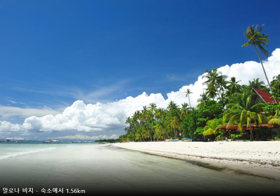 알로나 비치까지는 약 1.7KM 거리로 무료셔틀을 운영하고 있어 알로나 비치를 둘러보실 분들에게 편리합니다. 가격대는 10만원 전후로 객실도 넓고, 조용하게 보홀여행하실 분들에게 추천합니다.