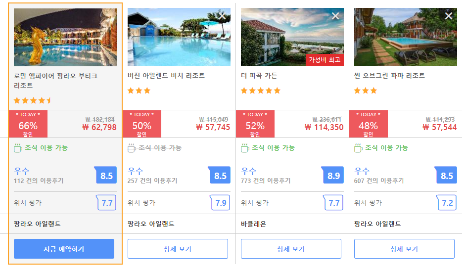 보홀 로만 엠파이어 팡라오 부티크 리조트 (Roman Empire Panglao Boutique Resort)의 최저 가격대는 아고다에서 할인특가 가격으로 매일매일 변동되며, 10만원대부터 다양하게 형성됩니다. 아고다 최저가를 확인하시려면 아래 링크를 누르시면 원하는 날짜의 가격대를 자세히 보실 수 있습니다.