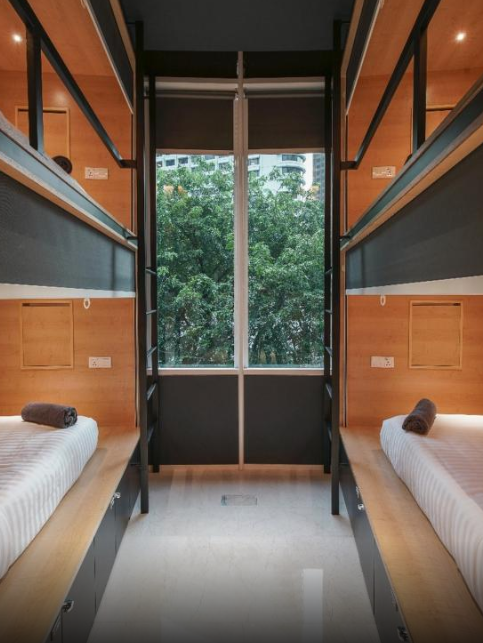 2인실에 묵었는데 여느 캡슐호텔과 다른 구조에 신기했어요. 라운지가 정말 좋았어요. 라운지 빈백에 누워 벽난로를 바라보는 힐링을 할 수 있어요. 아침식사도 같은 곳에서 하는데 모노레일이 지나가는 것을 볼 수 있어요. 조식도 맛났어요. 화장실은 공동으로 썼는데 굉장히 깨끗하고 시설이 좋았어요. 개인 냉장고는 없었지만 공동 냉장고를 사용하면되니깐 별 무리는 없어요. 블루 그린 무료셔틀버스가 지나가고 조금 위로가면 퍼플라인도 탈 수 있어요. 트윈타워까지 걸어서 10분이에요. 저는 다음에도 이용하고 싶을 만큼 아주 만족했습니다.