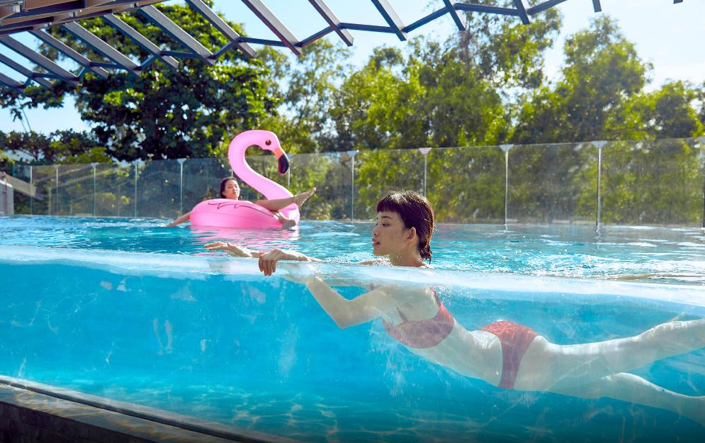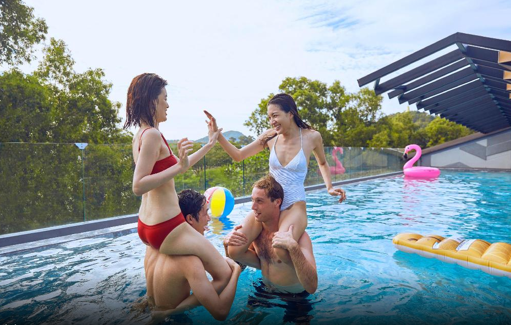 코사무이여행을 더욱 멋지고 추억에 남게 만들어주는 코사무이리조트로 추천하는 콘래드 코사무이리조트 (Conrad Koh Samui)는 개인풀장의 선배드에서 휴식을 취하며 멋진 시간을 보��