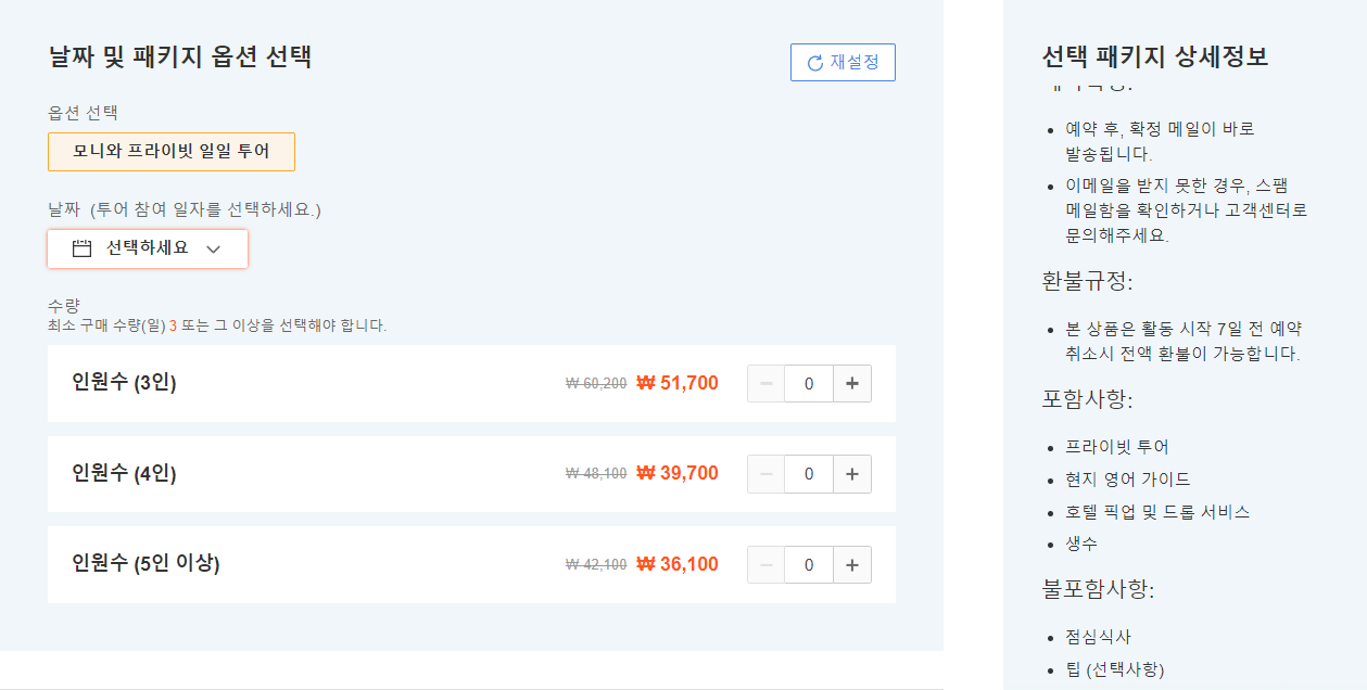 만 0-2세의 영유아는 무료로 투어에 참여할 수 있습니다.