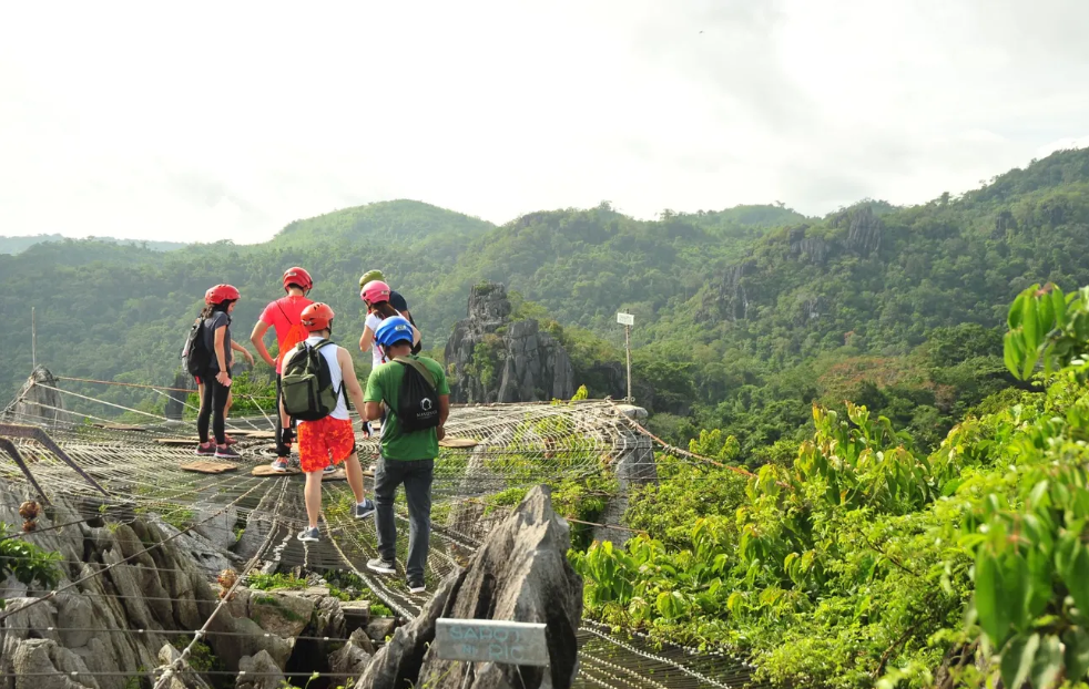 마닐라에서 추발하는 현지투어 마숭이 지오리저브 일일투어는 동식물을 비롯한 6,600만년 동안 보존된 석회암 및 카르스트 지형을 확인할 수 있고, 동굴, 돌길, 로프콧, 해발 600m 높이의 구름다리 등을 돌아보며 대자연의 신비와 아름다움을 만끼할 수 있습니다.