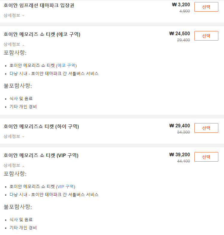 호이안 메모리즈쇼와 호이안 임프레션 테마파크 입장권