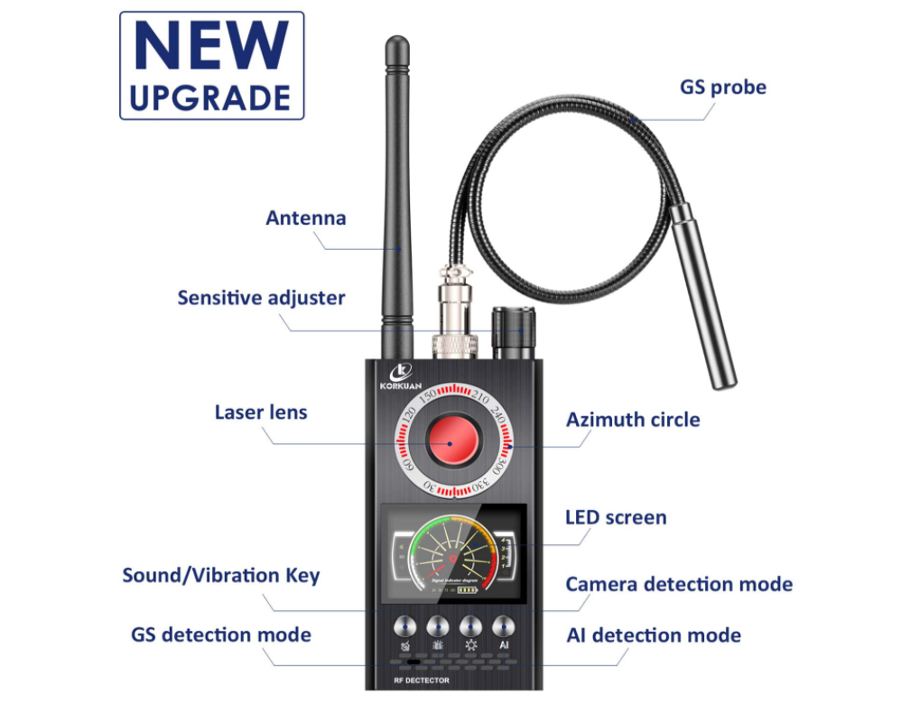 KORKUAN 신호 감지기기는 숨겨진 카메라는 물론, gps추척기능, 도청감지 기능 등 다양한 신호를 감지할 수 있습니다.