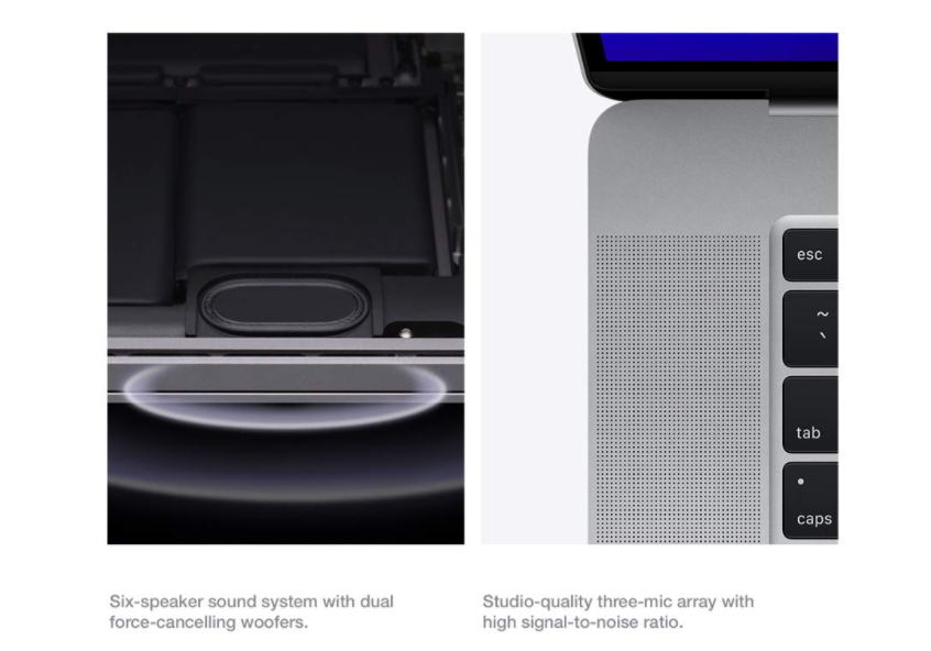 맥북 프로는 목소리가 큽니다. 6개의 스피커로 구성된 사운드 시스템은 여러분이 이전에 노트북에서 들어본 적이 없는 것처럼 방을 가득 채우는 넓은 스테레오 사운드를 만들어냅니다. 이중 포스 취소 우퍼는 진동을 극적으로 줄여 더욱 선명하고 자연스러운 사운드를 제공하며 베이스까지 반 옥타브 낮은 범위를 제공합니다. 또한 스튜디오급 3미크 어레이는 이동 중에 초클린 팟캐스트나 음악 녹음을 만드는 전문 타사 마이크와 어깨를 나란히 합니다.