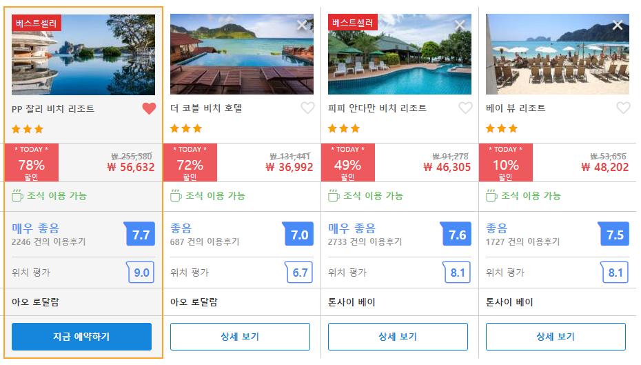 피피섬여행의 착한가격, 좋은 위치, 바다가 보이는 수영장이 있는 가성비