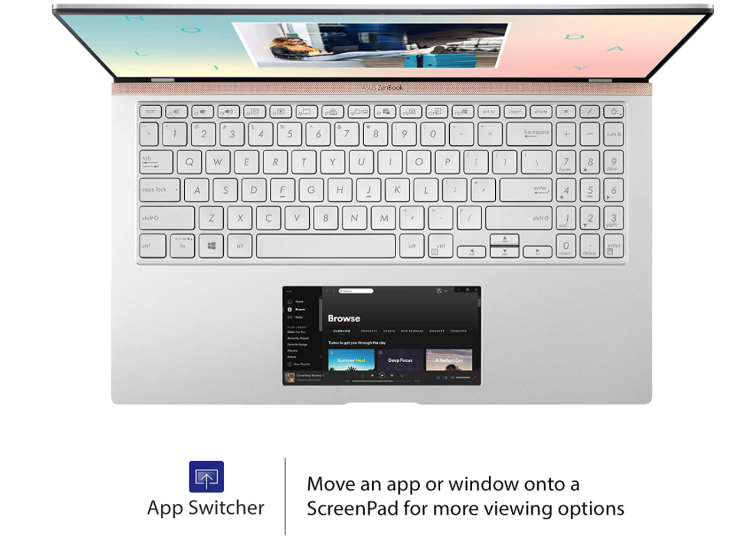 Evernote 및 Spotify와 같은 앱은 ScreenPad 전용 버전 없이도이 보조 디스플레이에서 즉시 완벽하게 작동합니다. ASUS는 또한 비디오 편집 소프트웨어 개발자 Corel을 포함한 타사 개발자와 긴밀하게 협력하여 궁극적 인 생산성을 위해 적응 형 ScreenPad 도구를 최적화합니다. 앞으로 더 많은 일이있을 것입니다.