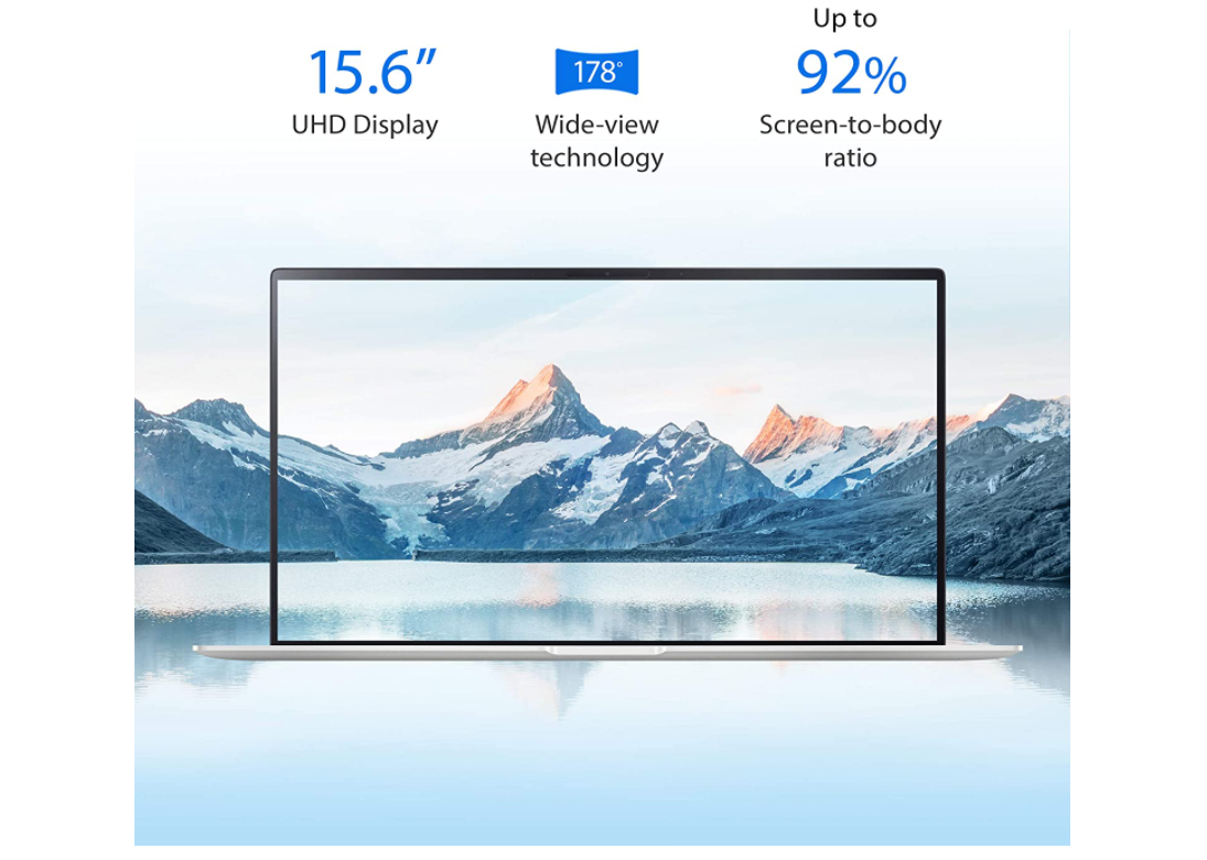 15.6인치 와이드 뷰 4K UHD 4방향 NanoEdge 베젤 디스플레이와 92% 화면 대 바디 비율.
