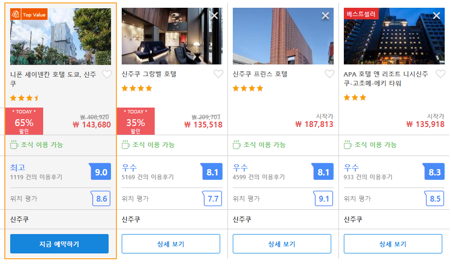 니폰 세이넨칸 호텔 도쿄, 신주쿠 (Nippon Seinenkan Hotel Tokyo, Shinjuku)의 최저 가격대는 아고다에서 할인특가 가격으로 매일매일 변동되며 10만원대부터 다양하게 형성됩니다.아고다 최저가를 확인하시려면 아래 링크를 누르시면 원하는 날짜의 가격대를 자세히 보실 수 있습니다.