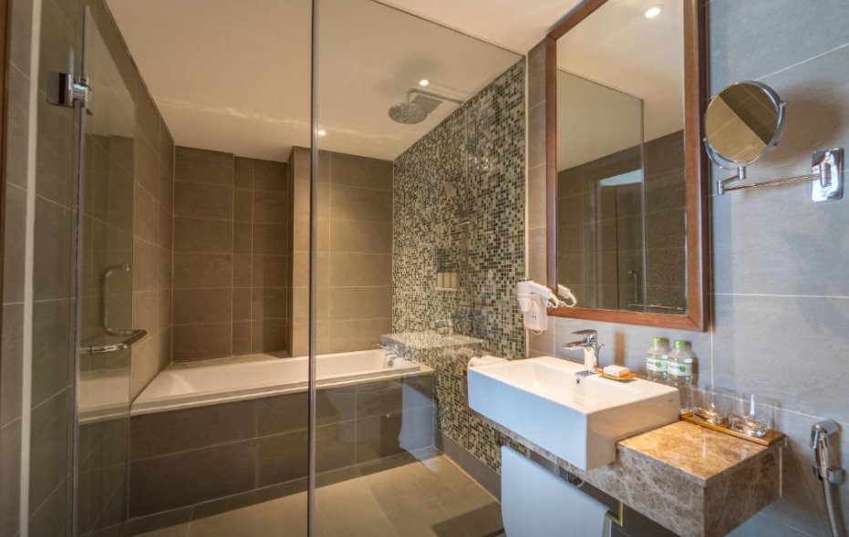 1. 수영장 : 말이 필요없이 넓고 좋음. 매일 같이 수영장소를 골라서 수영할 수 있어 지루하지 않아 좋음 2. 청결 : 깨끗한 편. 다만 물이 시원하게 잘 나오는 편은 아니고 변기에서 소변의 찌른내가 나는게 아쉬웠음. 3. 조식 : 만족 만족 만족👍🏻4. 위치 : 공항에서의 위치가 좋음. 주변이 깨끗함. 즈엉동까지는 택시타고 가야 함.