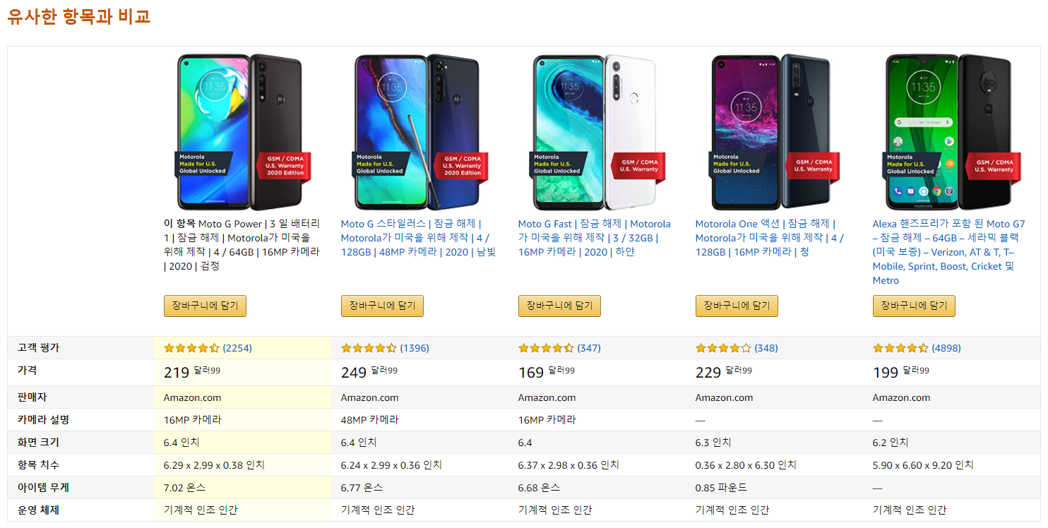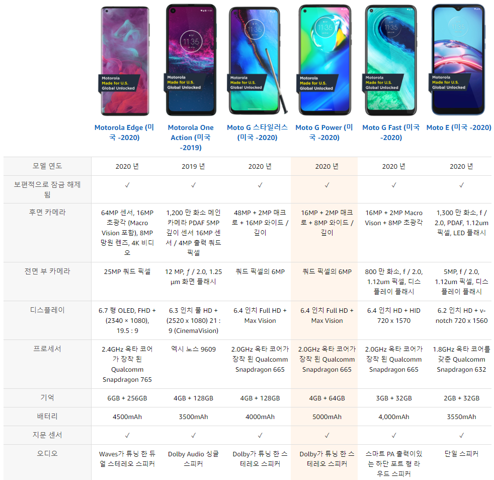 Motorola Moto G Power 스마트폰은 글로벌 잠금 해제제품으로 모든 이동 통신사에서 사용되며 SIM을 삽입하면 바로 사용할 수 있습니다. 제품은 아마존에서 219.99달러에 판매하고 있으며 한국으로 직배송가능한 제품입니다. 국제배송비는 11.04달러이며, 예상통관 비용 예치금 41.30달러가 추가됩니다.