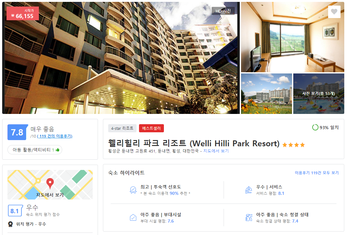 정선호텔 // 산속이라 공기도 좋고 가격대비 저렴한 웰리힐리 파크 리조트 (Welli Hilli Park Resort)