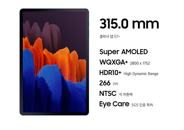 * Super AMOLED 디스플레이는 갤럭시 탭 S7+ , S7+ 5G 에서만 사용 가능합니다.