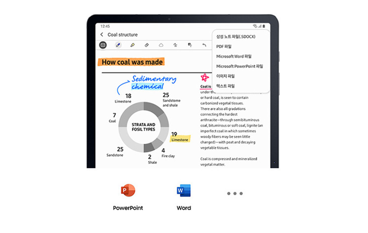 삼성 노트는 다양한 파일 형식으로 저장이 가능합니다. 작성한 메모를 Microsoft Word.