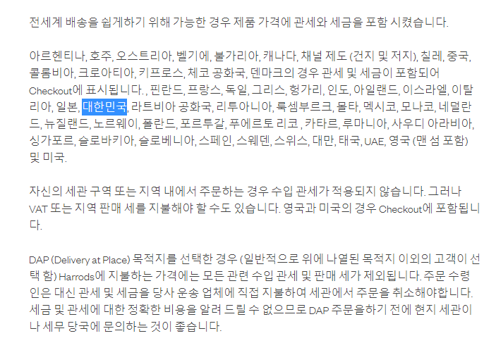 사이트는 영문으로 되어 있으며, 배송비는 한국으로 배송시 최대 25유로정도이며, 전세계 배송을 쉽게하기 위해 가능한 경우 제품 가격에 관세와 세금을 포함 시켰다고 합니다.