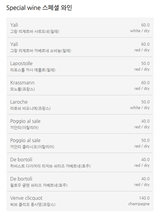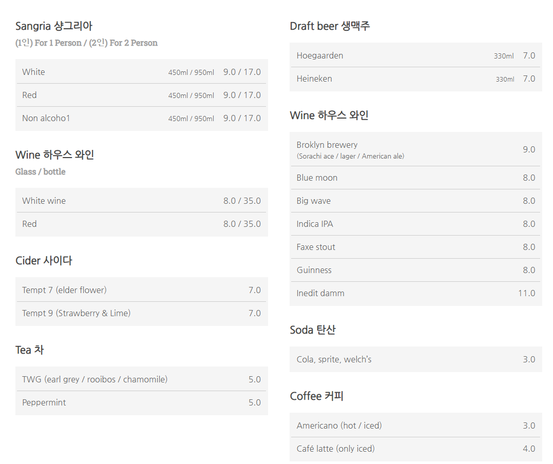 마치 유럽에 온 듯한 편안하고 따뜻한 분위기에 반할거예요. 무엇보다 이곳은 시즌마다 새로운 신메뉴를 맛볼 수 있어요. 샐러드, 파스타, 빠에야, 스테이크 등 다양한 요리를 맛보며 와인을 한 잔씩 곁들이는 것도 좋아요.