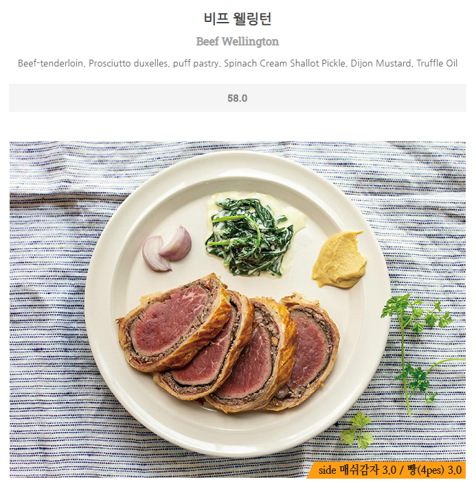 무엇을 맛봐야할 지 모르겠다면 시그니처 메뉴 중 하나인 비프웰링턴, 트러플오일 카치오에페페 요리를 추천할게요! 소중한 사람과 잊지못할 로맨틱한 시간을 보내보세요.