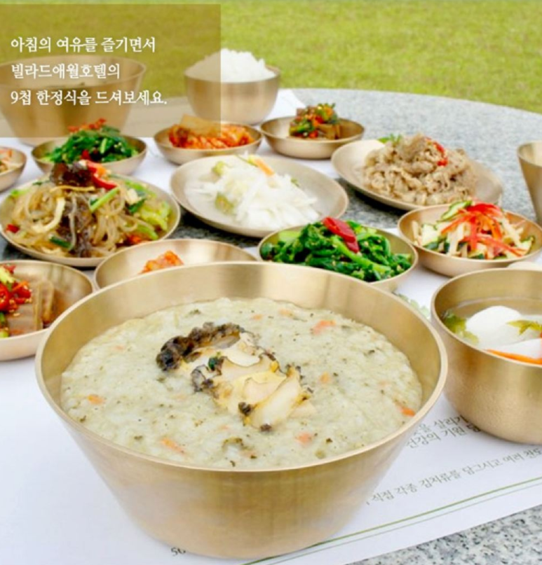 제주커플여행코스 아침식사 // 전복죽 또는 성게 미역국 메뉴의 아침 한정식코스 제주 빌라드애월 애월향정조식