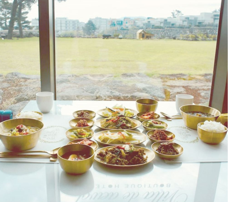 제주도를 여행하며 가족과 함께 또는 친구들과 멋진 제주도 바다가 보이는 곳에서 세계 각국의 다양한 음식 및 제주도의 고기국수, 돔베고기, 전복죽, 제철반찬(육회, 새우장,