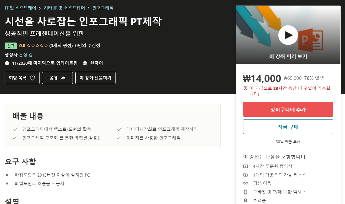 시선을 사로잡는 인포그래픽 PT제작 강좌는 온라인으로 보실 수 있으며