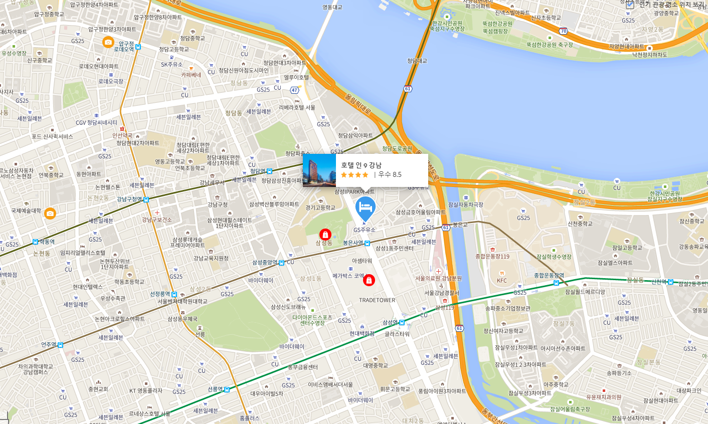서울 삼성동에 있는 호텔 인 9 강남 (Hotel in 9 Gangnam)은 즐거움과 편안함을 즐길 수 있는 이상적인 곳입니다. 이 곳에서 생동감 넘치는 도시의 많은 것을 최대로 즐길 수 있습니다. 본 숙소는 도시의 필수 관광 명소에 손쉽게 접근할 수 있는 편리한 위치를 자랑합니다.