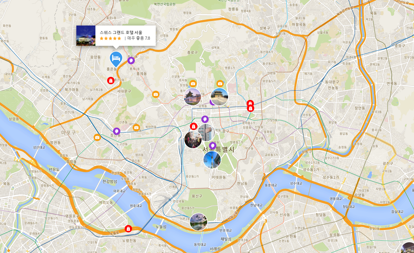 서울의 나이트 라이프, 쇼핑, 레스토랑 지역에서 좋은 위치에 있는 스위스 그랜드 호텔 서울은 바쁜 일상으로부터 꿀맛 같은 휴식을 취할 수 있는 최적의 장소입니다. 도심에서 단 4 km 거리에 있는 본 숙소는 투숙객이 빠르고 쉽게 지역의 많은 명소들을 즐길 수 있는 위치적 이점이 있습니다. 월드컵 공원, 서대문 문화센터, 얼짱몸짱 홍제 등에 인접함과 깨끗한 환경은 본 숙소가 갖는 특별한 매력입니다.