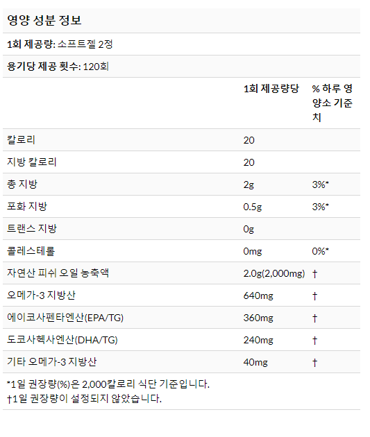 2,000mg 소프트젤당 EPA 360mg & DHA 240mg 함유 - 하루 소프트젤 2정!