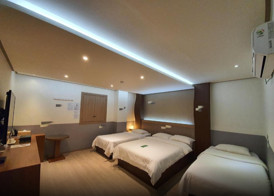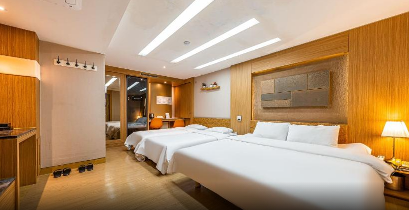 지하철역 가까움. 대학가에 있어 저렴한 맛집,놀거리 풍부. 4인 가족 지내기에 부족함 없는 객실, 넓은 스파 욕조로 씻기 편함. 샤워실과 화장실이 분리되어 이용 편리. 호텔규모는 작았으나 있을건 다 있음. 연박했는데 청소 매일, 편의용품도 매일 보충해 줌. 게다가 조식도 무료임.밥,국,김치,빵,씨리얼,바나나,음료,커피 있음.맛도 있음. 다만 화장실 물이 시원하게 안 내려가 조금 불안했음. 재숙박 의향 있음.