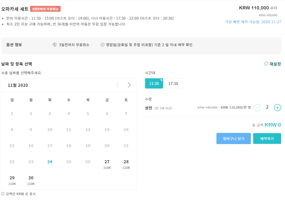 예약하실 수 있으며 점심시간, 또는 저녁시간을 선택하실 수 있습니다.
