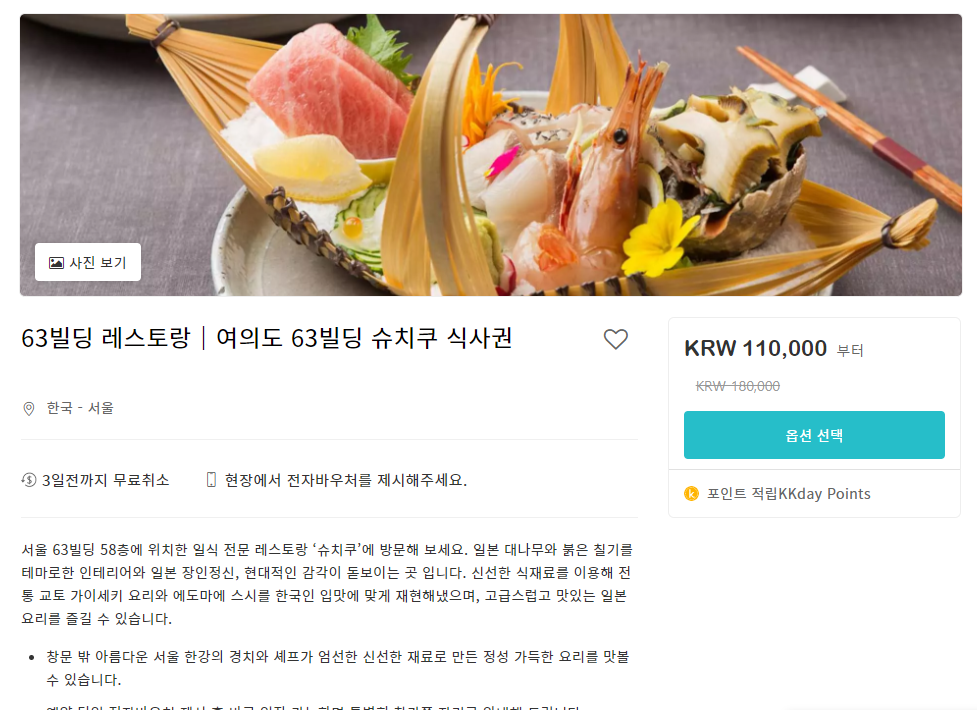 서울레스토랑 여의도 63빌딩 슈치쿠는 kkday사이트에서 할인된 금액에