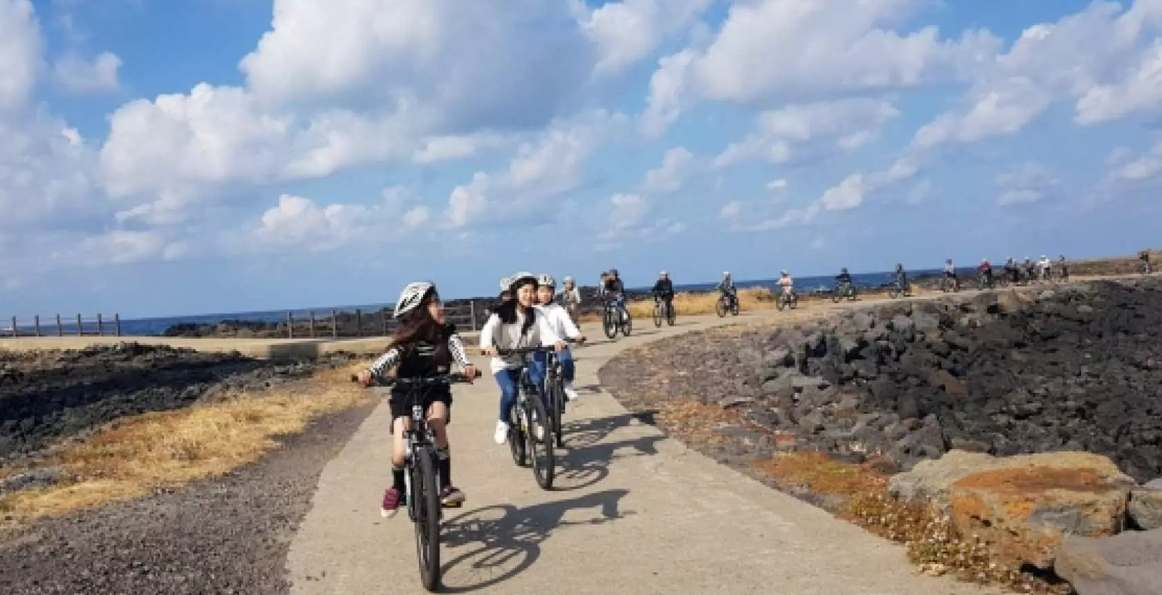 한적한 해안도를 여유롭게 자전거를 타고 달립니다.