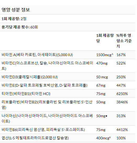 비타민D가 뼈 건강에 도움이 된다는 것은 모두가 아는 사실입니다. 하지만 비타민D는 건강한 세포 분열도 촉진하며, 면역계 건강을 지원하는 등 여러 활동을 합니다. 투 퍼 데이 종합비타민은 제공량마다 2,000IU의 비타민D3를 공급합니다.