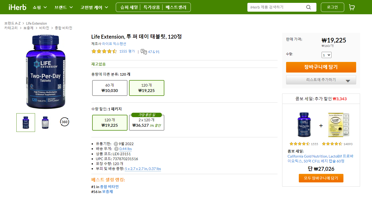 Life Extension, 투 퍼 데이 태블릿, 120정은 아이허브에서 구매하실 수 있으며,