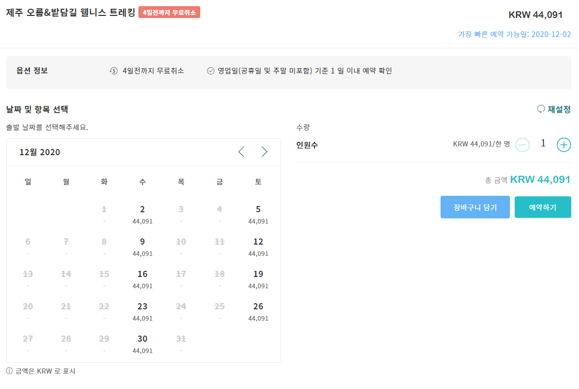 최소 출발 인원수 미달로 투어가 취소될 수 있습니다. (*수요일은 10명이 되어야 투어가 진행됩니다.)