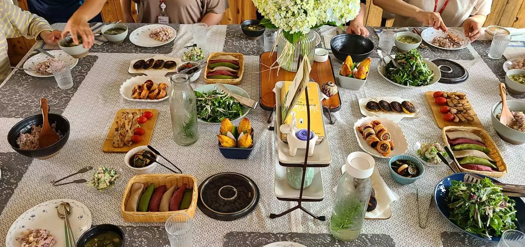 주인장이 직접 키워낸 농산물로 만든 제주 전통음식을 재현한 음식을 함께 먹으며 투어를 마무리 합니다. 정성스럽게 차려진 식탁을 보는 것만으로도 힐링이 될 것만 같은! 맛은 어떠냐고요? 물뫼힐링팜이 선사하는 제주의 맛을 잊지 못할 겁니다!