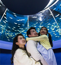 물 위에서 수조를 내려다 볼 수 있는 '대구 바다 구름다리', 돔형태의 파노라마 수조인 '천장 수조'