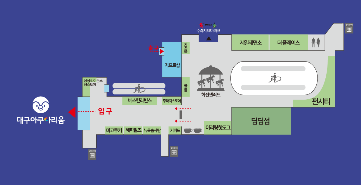 푸른바다의 정원/강물따라/동물의 숲/대구의 바다로 구성되어 있습니다.