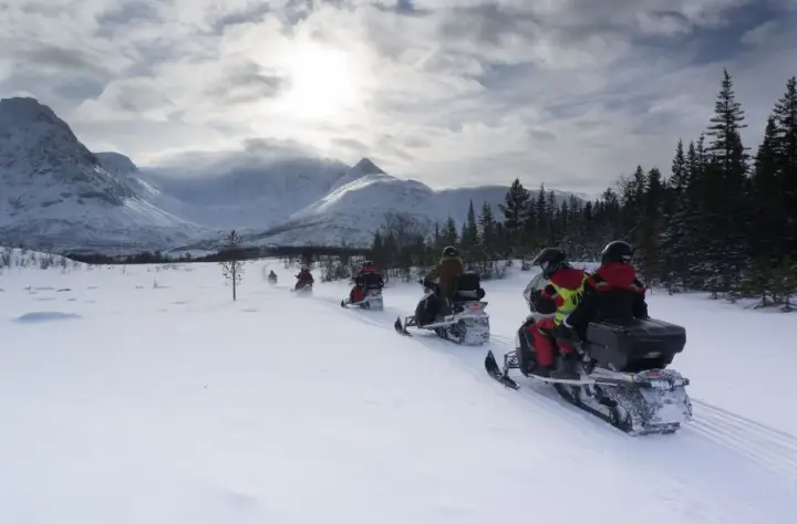 스노모빌을 쌍으로 운전하고(운전자 1명과 동승자 1명) 중간 지점에서 운전사를 바꿀 기회를 얻으십시오. Lyngen 알프스를 통과하는 경치 좋은 산책로에서 트롤의 신화 세계를 탐험하면서 자연 속으로 깊숙이 여행하세요.
