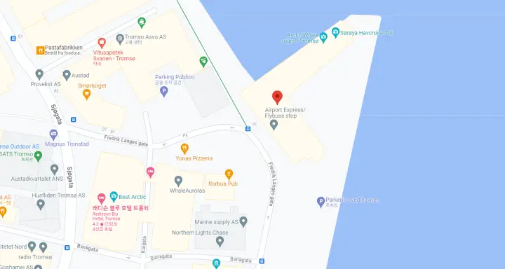 Lyngen 917로 표시된 북극 노선 버스는 Scandic Ishavshotel에서 출발합니다. 버스는 정확히 오전 8시 45분에 출발합니다. 버스가 기다리지 않으므로 출발 최소 15분 전에 픽업 지점에 도착하는 것이 좋습니다. 버스는 Breivikeidet로 이동하여 도보 승객(포함)으로 페리에 탑승하게 됩니다. 귀하의 활동 제공자는 추가 교통편을 위해 Svensby의 반대편에서 귀하를 만날 것입니다. 매우 바쁠 수 있으므로 올바른 그룹을 찾으십시오.