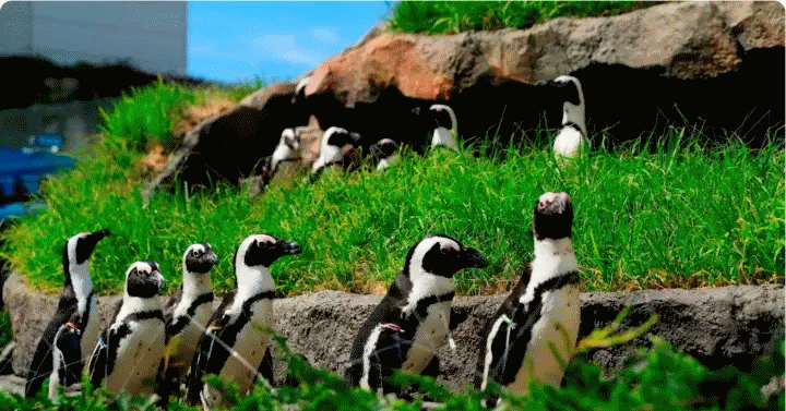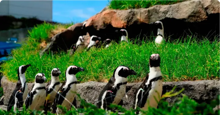 지역 주변을 행진하거나 해달 및 플라밍고와 함께 수영하는 펭귄 무리를 구경하세요.