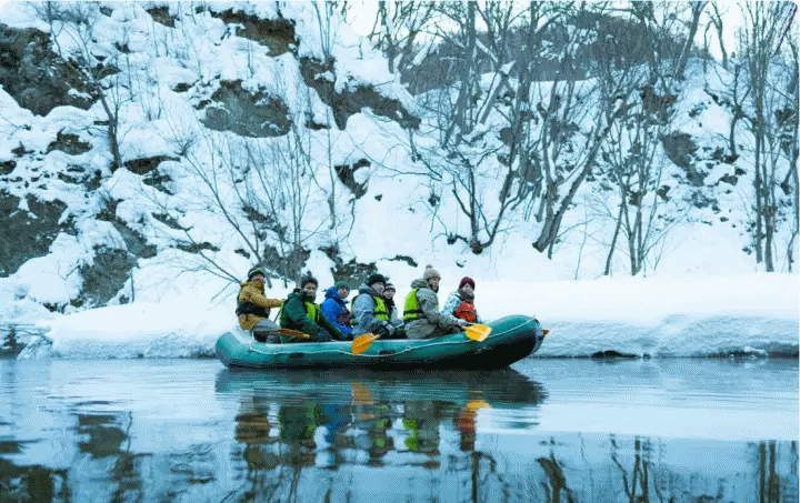 일본 홋카이도여행에 삿포로 조잔케이온천마을을 여행하며 즐기기 좋은 액티비티로 추천하는 조잔케이 눈 감상 래프팅 체험은 겨울기간 한정으로 진행되는 투어로 조잔케이마을에서 출발하며 래프팅 보트를 타고 도요히라가을 따라 조잔케이마을의 눈쌓인 겨울을 느끼실 수 있습니다. 경험이 풍부한 영어강사가 동해하며 멋진 풍경을 감상하실 수 있고, 운이 좋다면 다양한 야생동물들을 발견하실수 있습니다.