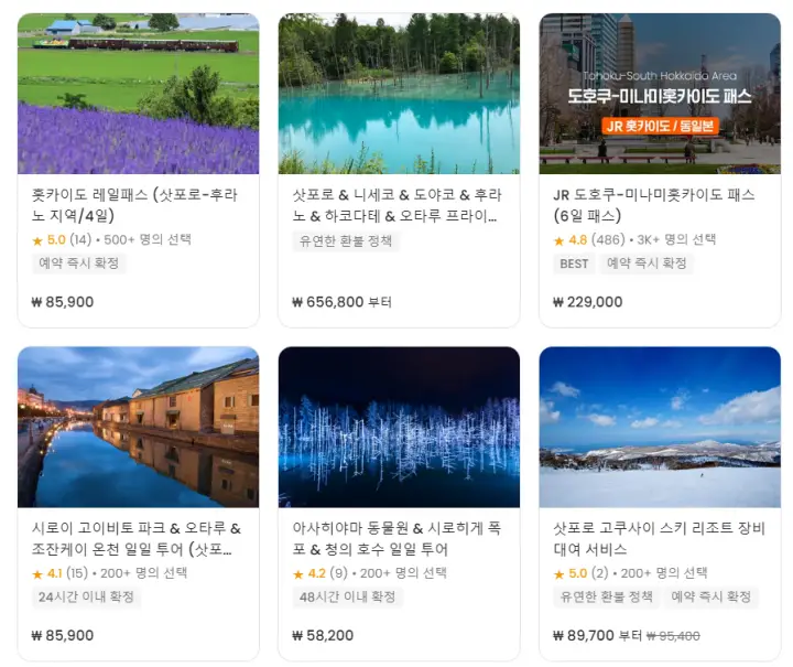 홋카이도여행에 무제한으로 이용할 수 있는 교통편으로삿포로, 오타루, 오샤만베, 다키카오와, 신토쿠, 구시로, 아바시리, 아사히카와, 왓카나이, 하코다테, 히가시무로란 등 도시간 이동하기