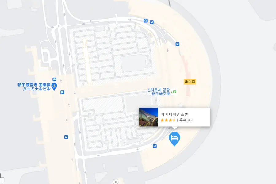 치토세 에어 터미널 호텔 (Air Terminal Hotel)은 국내선 터미널 바로 안쪽 국내선 출발 게이트 4번 근처에 위치해 있어 창밖으로 비행기가 착륙하고 출발하는 모습도 볼 수 있어 보기 좋습니다. 훌륭한 음식과 함께 매우 합리적인 가격(공항 식당과 비교)인 레스토랑을 포함하여 모든 시설을 갖춘 대형 대형 온천. 호텔에는 자체 카페도 있으며 점심 뷔페는 1,200엔에 마음껏 드실 수 있습니다. 신치토세 공항역에서 도보로 4분 거리에 자리한 이 여유로운 분위기의 공항 호텔은 신치토세 공항 국내선 터미널과 바로 연결되어 있습니다.