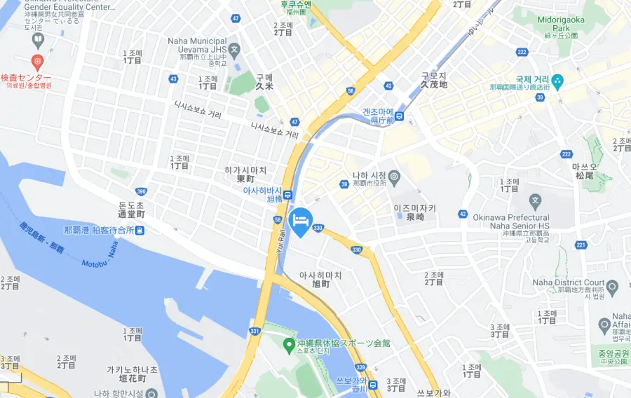 호텔이 위치한 나하시 1-9 Asahimachi 지역 분위기